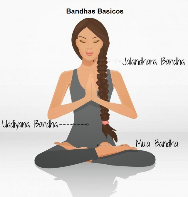 Where the banhas are located, engage them gently. No need to pull the bandhas as intensely as you might during asana practice.