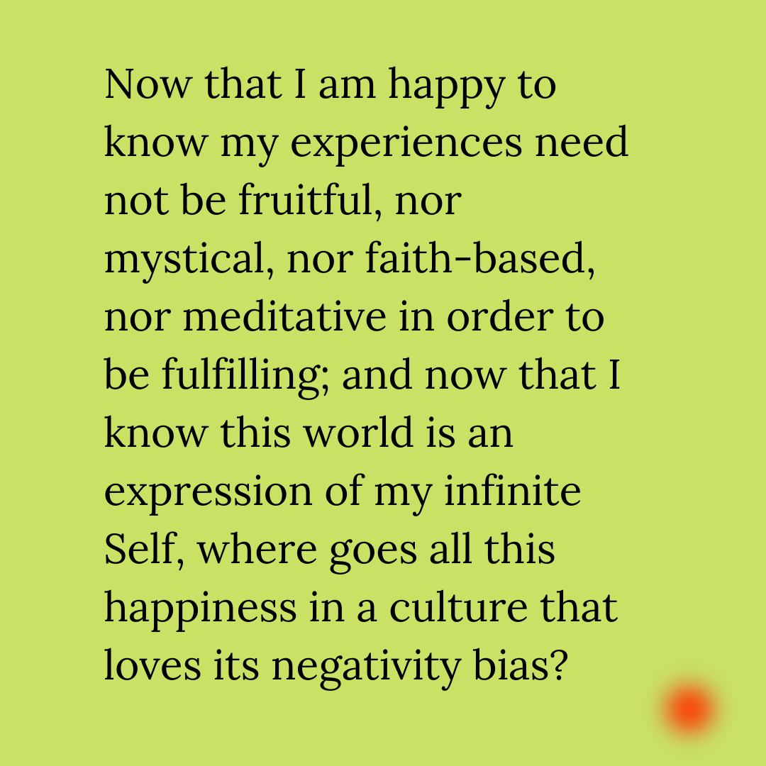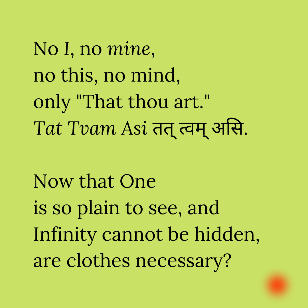 So, I’ve abandoned kundalini yoga, burned my teaching certificates. Instead, I read Astavakra Samhita. It’s taking time, heartache, and further training and coughing up more resources to learn Sanskrit. Part of me wonders what is the point and complains I am too old and who has the time or resources to learn Sanskrit? But Edwin Bryant asks us, “What else are you going to do with your time? Watch TV? Socialize? Make svadhyaya your social life!” He’s right. Anyone want to create a svadhyaya group with me? So, it’s true, it doesn’t take much to study this stuff. The Astavakra Samhita costs $6 from Vendanta Press. Chant it in the morning. Enjoy the true “yoga of awareness.”