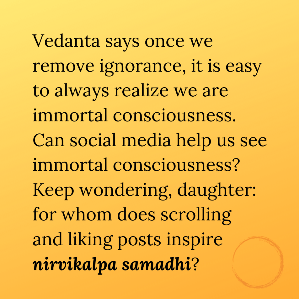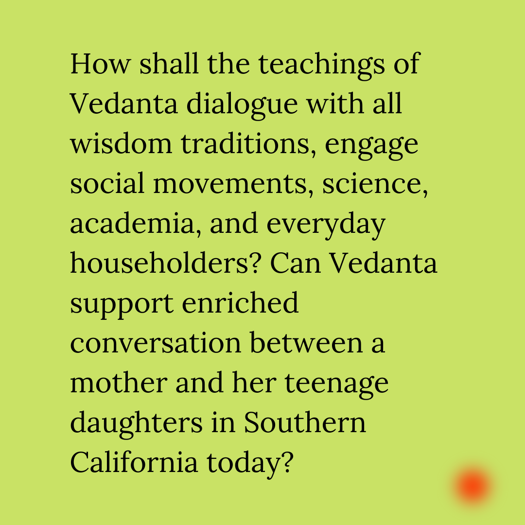 Vivekananda writes, “There is room for an infinite amount of feeling, and so also for an infinite amount of knowledge and reason. Let them come together without limit: let them run together, as it were, parallel with each other.” And reading Sankara’s Brahma Sutras, where he talks about ways in which reasoning corroborates with heart truths through hearing the texts (Sravana), thinking about their meaning (Manana), and meditation on them (Nididhyasana). And then he writes, “This leads to intuition. By intuition is meant that mental modification (Vritti) of the mind (Citta) which destroys our ignorance about Barhman. When the ignorance is destroyed by this mental modification in the form of Brahman it is called Bramakara Vritti.” He goes on to say, Brahman, which is self-luminous, reveals Itself in ordinary perception. This means that the truth is arrived at through reasoning. Brahman is perceived as real or even more real than this cup of coffee that I am drinking. Brahman is mentally cognizable. Brahmakara Vritti is what made Sri Ramakrishna see the Goddess Kali as more real than he could see young Narendra standing beside him. Brahman becomes a perceived experience, not a belief, not an intellectual idea, but a lived reality.